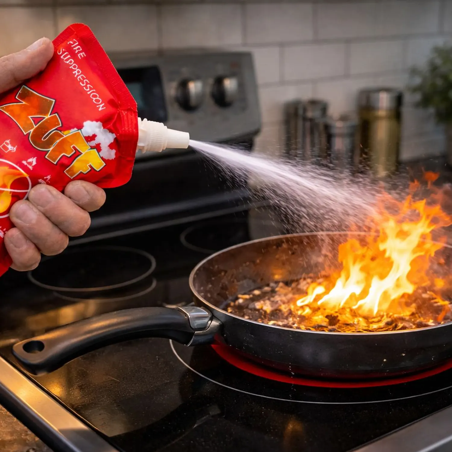 Combines the most effective fire-suppressing chemical available today with a flexible, squeezable doypack instead of traditional, harmful pressurized cylinders. Quick Deployment: No complicated setup or pressurization needed